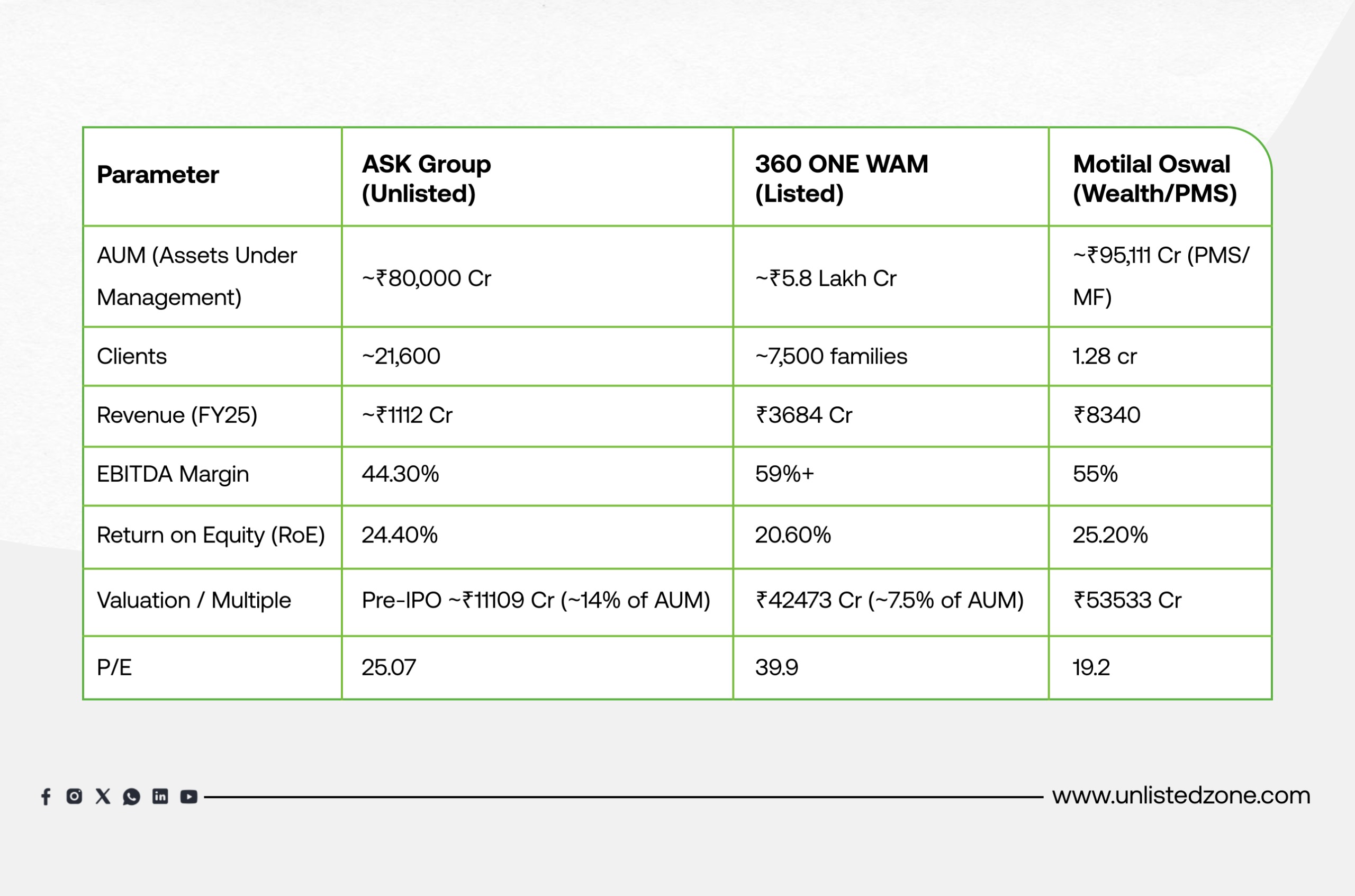 Valuation Difference: The market values these strong performers differently. ASK's high "% of AUM" valuation suggests investors see major growth potential, while 360 ONE's large size commands the highest absolute market value.