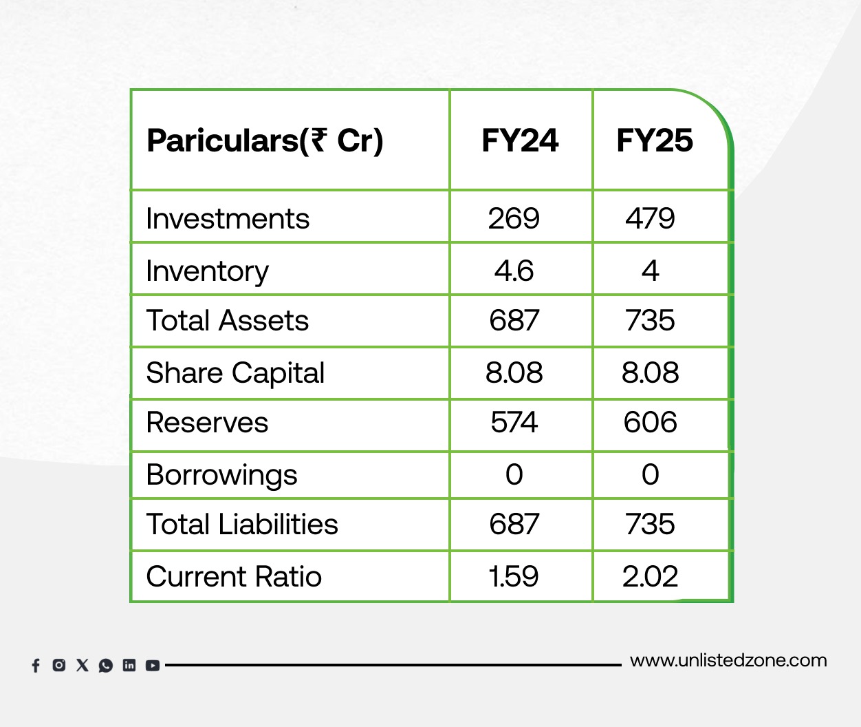 Zero Debt: The company maintains a debt-free balance sheet with strong reserves (₹606 Cr in FY25).