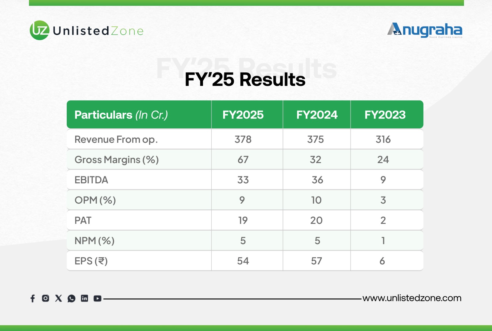 C) Key Highlights of the Year (FY 2024-25) of Anugraha Valve Unlisted Shares