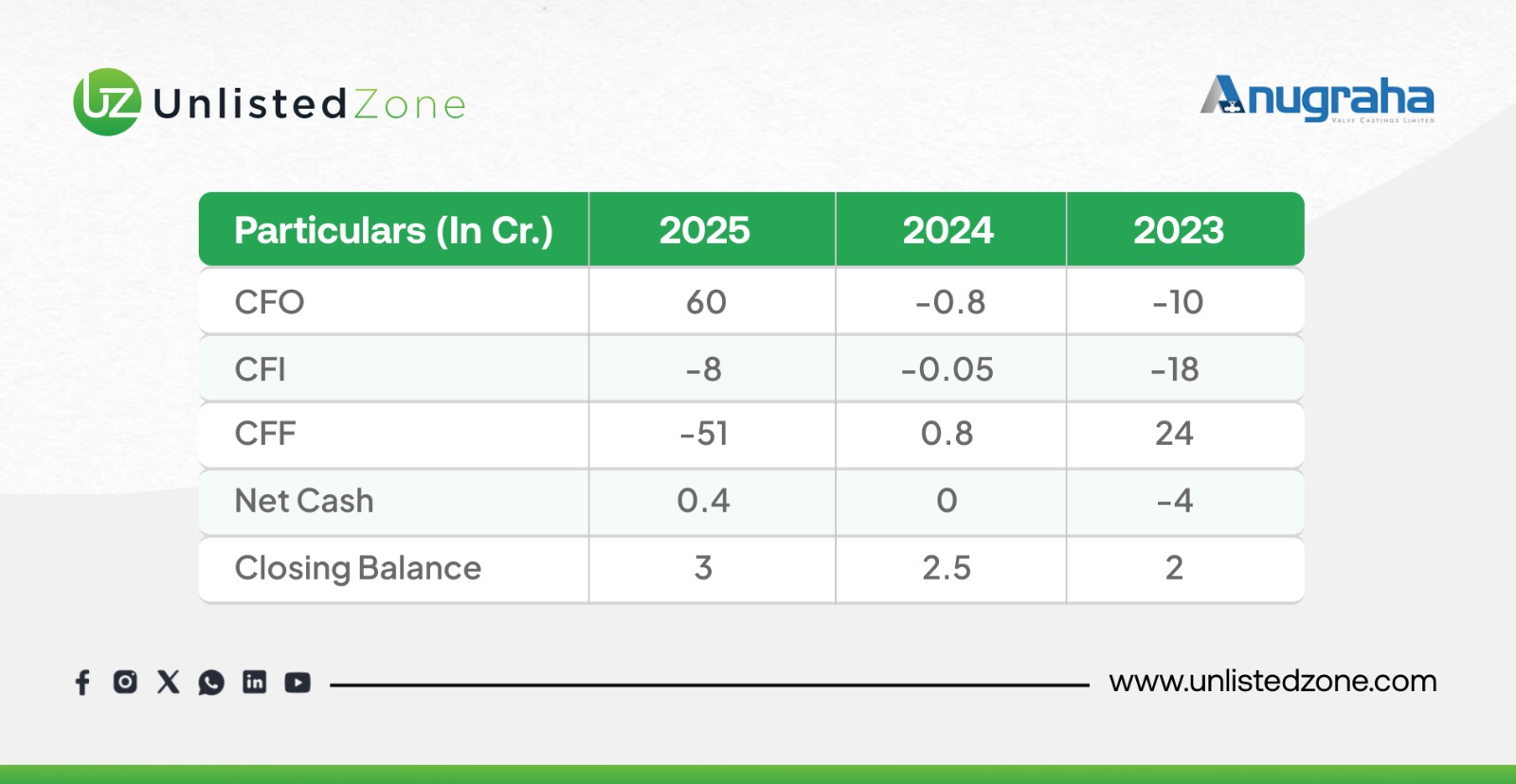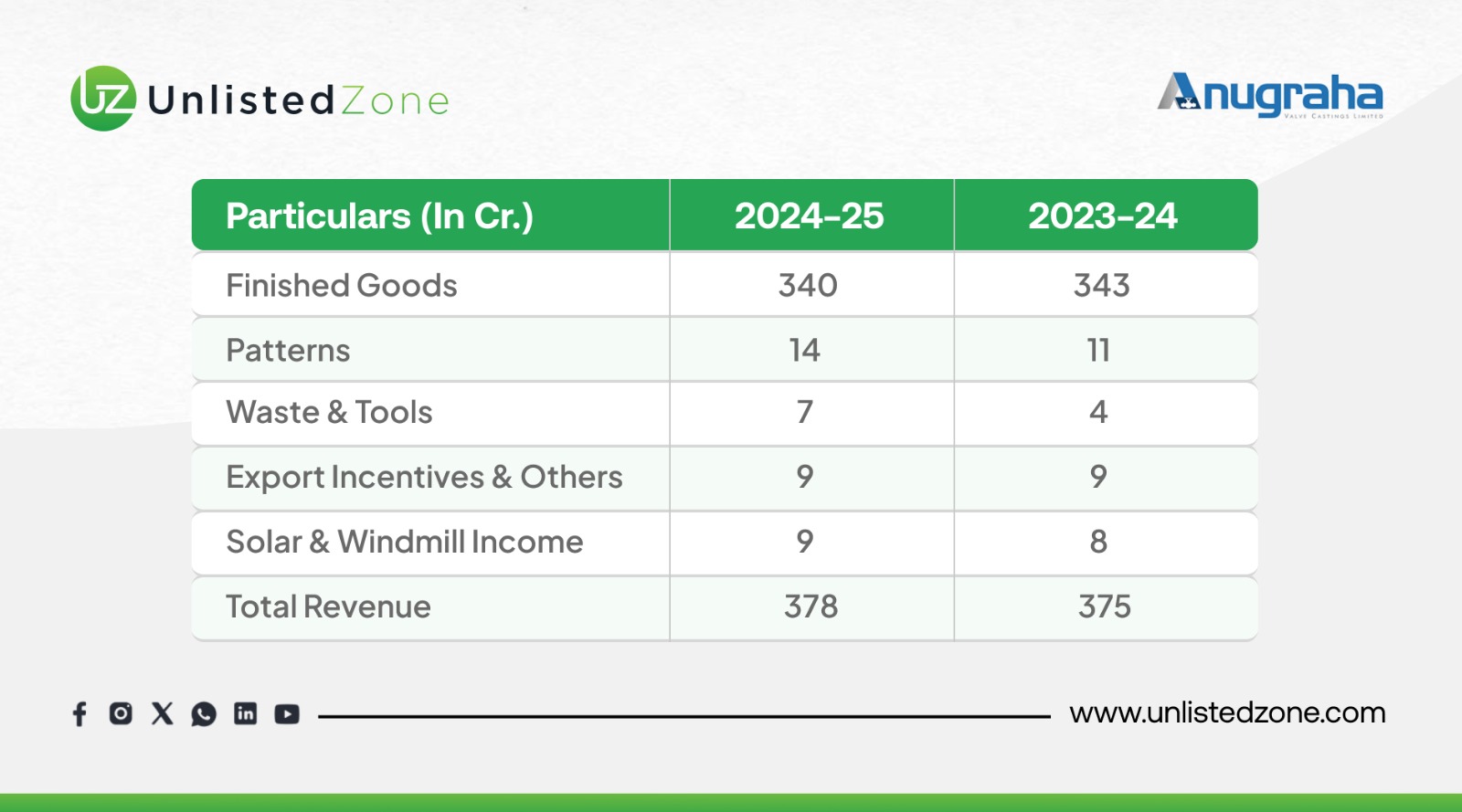 D) Financial Performance Snapshot of Anugraha Valve Unlisted Shares