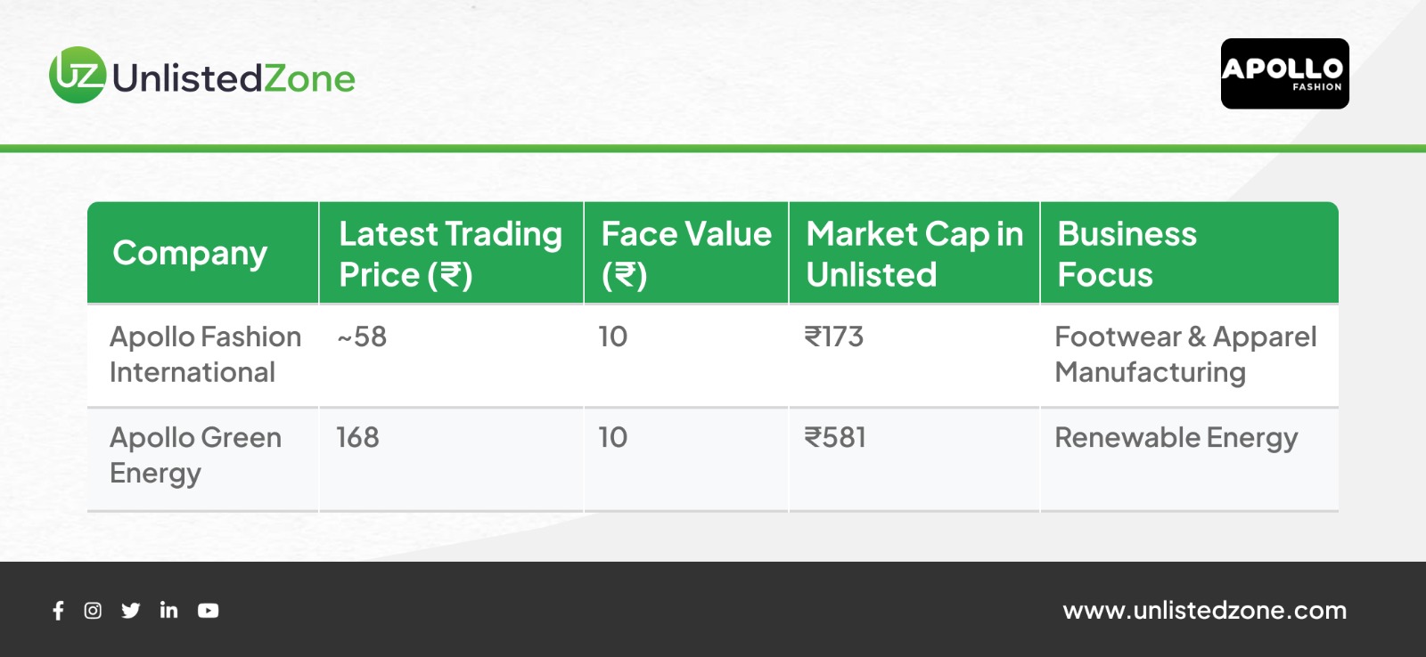Both entities — Apollo Green Energy and Apollo Fashion International — remain unlisted but actively trade on leading pre-IPO platforms.