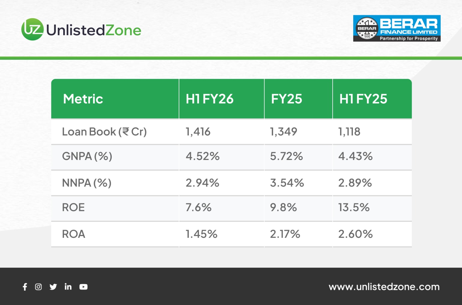 Every lending business dreams of hitting the sweet spot: expanding the loan book, improving asset quality, and keeping profitability intact. Nagpur-based Berar Finance Limited, a 34-year-old NBFC, seems to be inching closer to that balance in H1 FY26.
