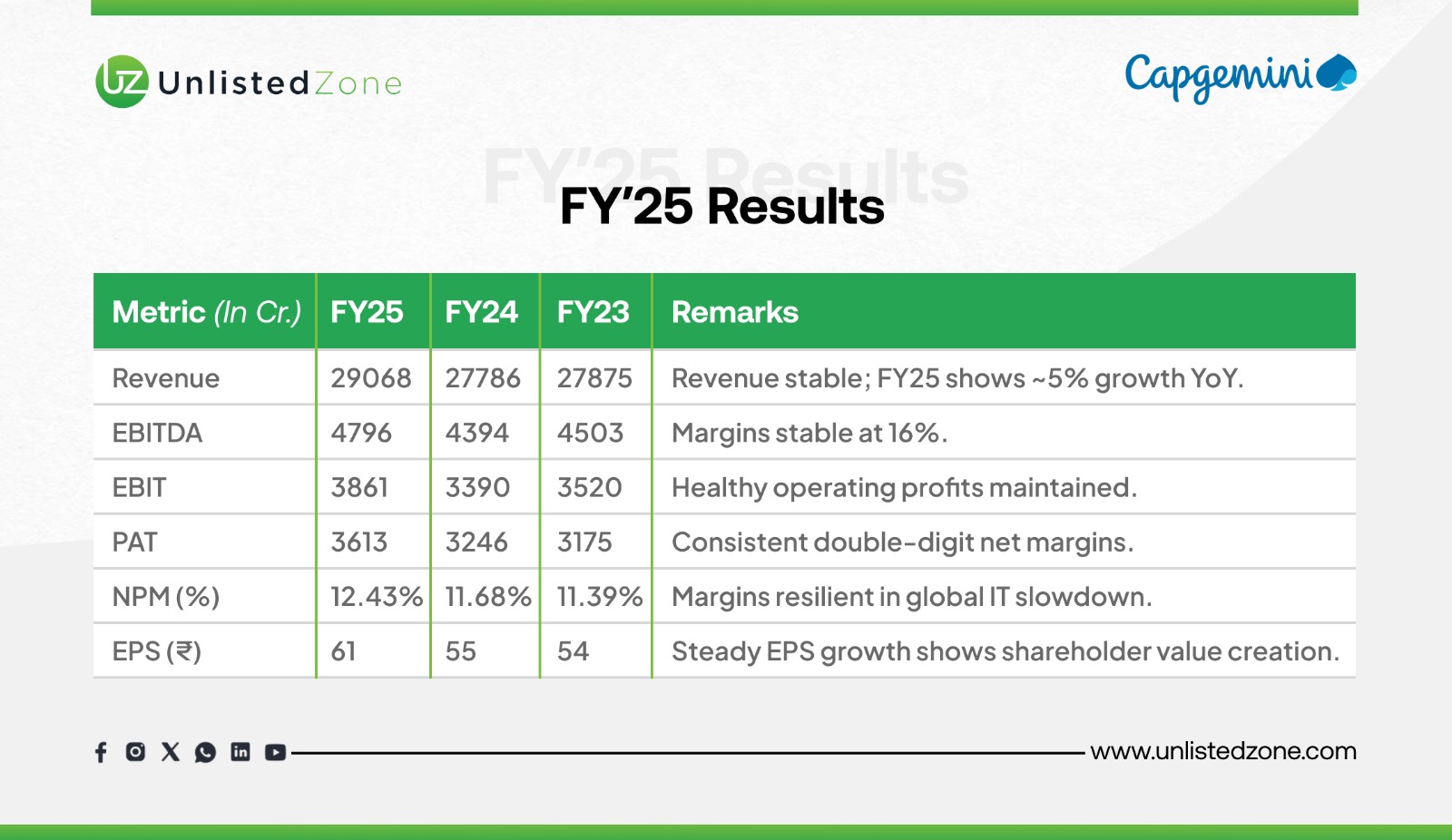 Capgemini Technology Services India Ltd. is a debt-free, cash-generating IT services giant backed by strong promoter ownership. With steady margins, healthy ROE, and attractive valuations, it is well-suited for HNIs and long-term investors seeking stable returns in the Indian unlisted IT space.