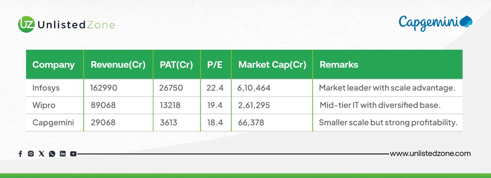 Peer Comparison (FY25) of Capgemini Technology Unlisted Shares