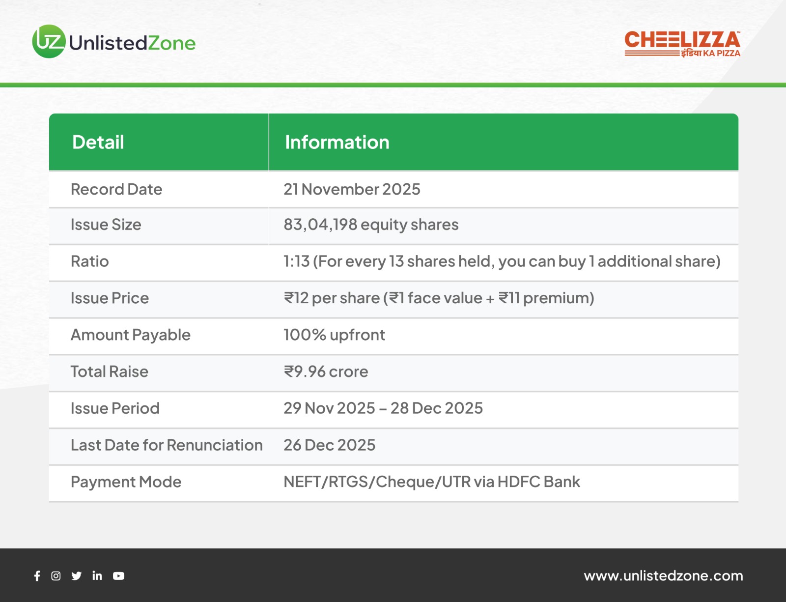 If you're an existing shareholder of Cheelizza Pizza India Limited, you’ve just been handed something interesting — a fresh rights issue served with a topping of expansion plans, discounted pricing, and a taste of opportunity.