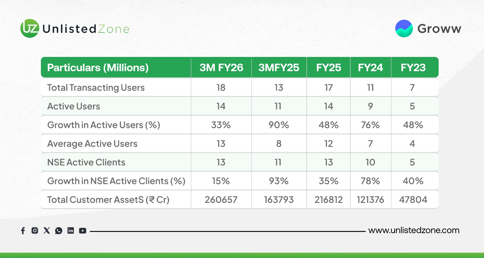Key Takeaway: Active user base has expanded at a 5-year CAGR of ~48%, while customer assets grew nearly 5.5x between FY23 and FY25.