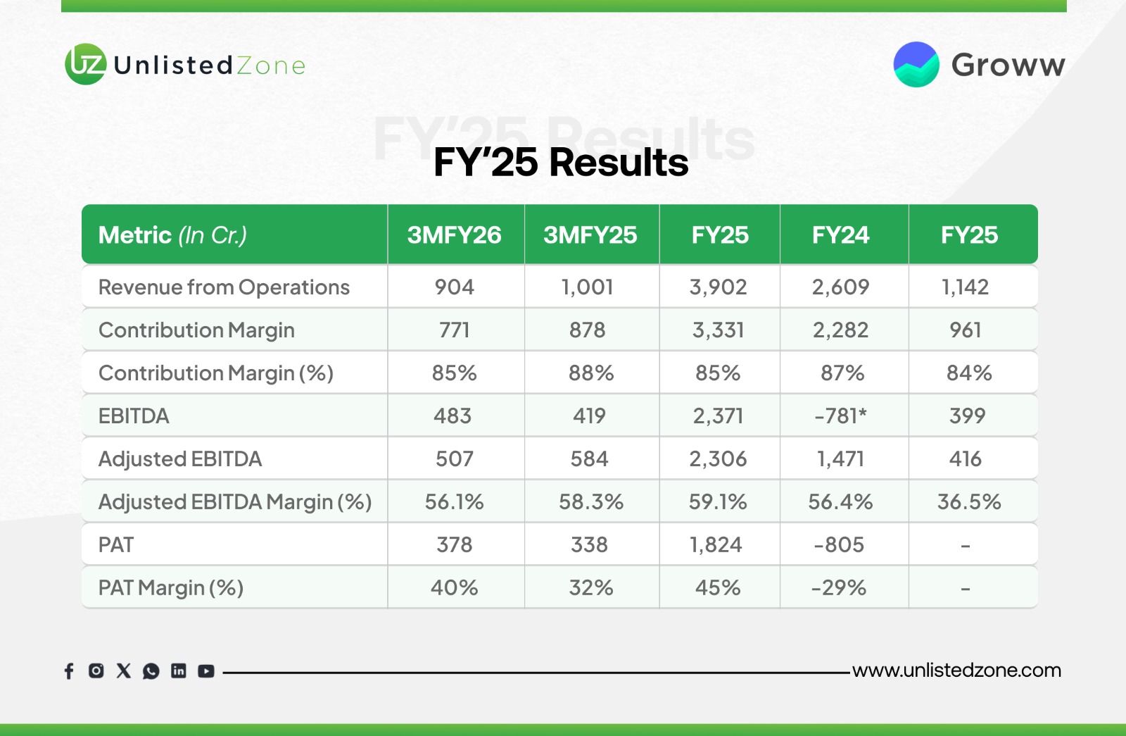 J) Peer Comparison (FY25) of Groww Unlisted Shares