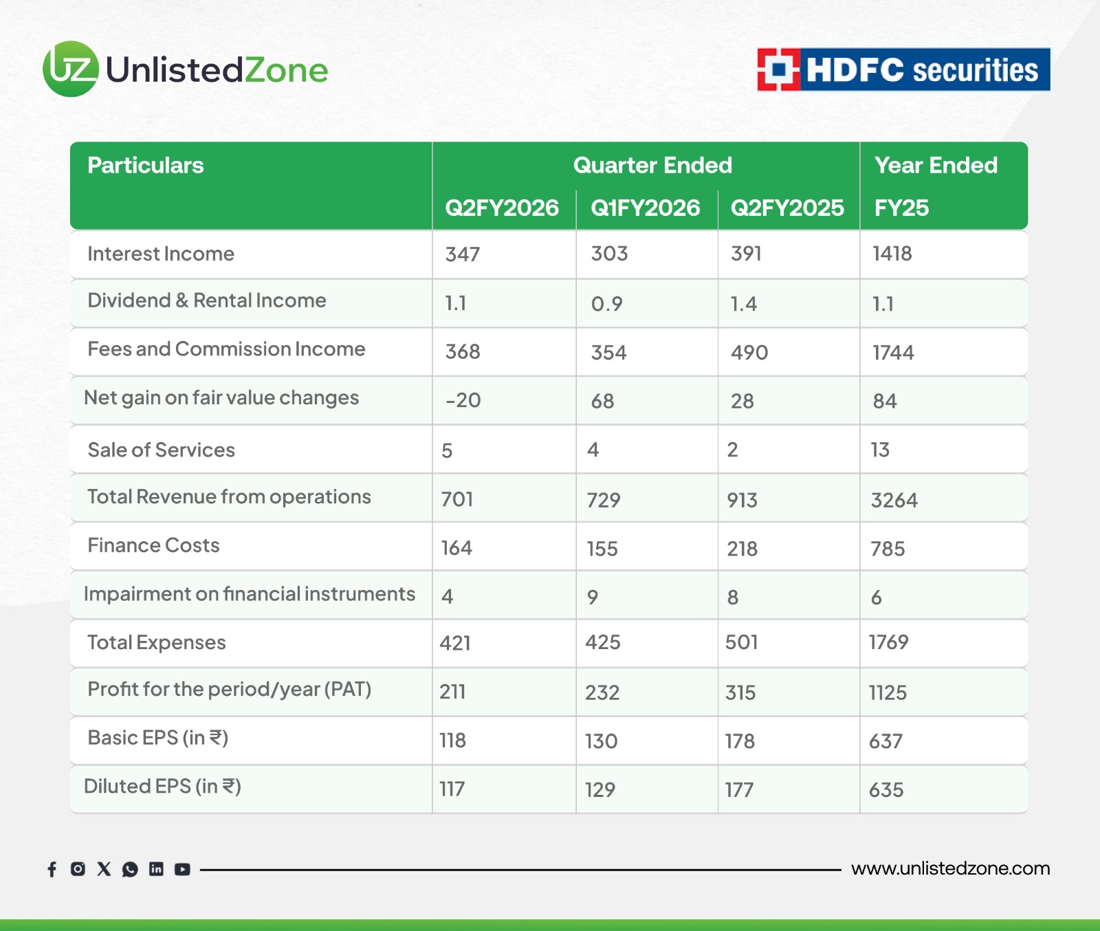 The Q2FY26 results of HDFC Securities Limited highlight a cooling phase in India’s capital market activity. The data reveals declining revenues, compressing profitability, and subdued investor participation — trends that mirror what the broader brokerage industry is currently facing.