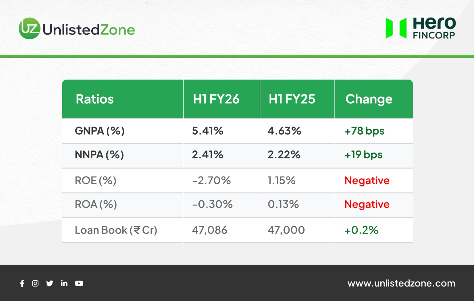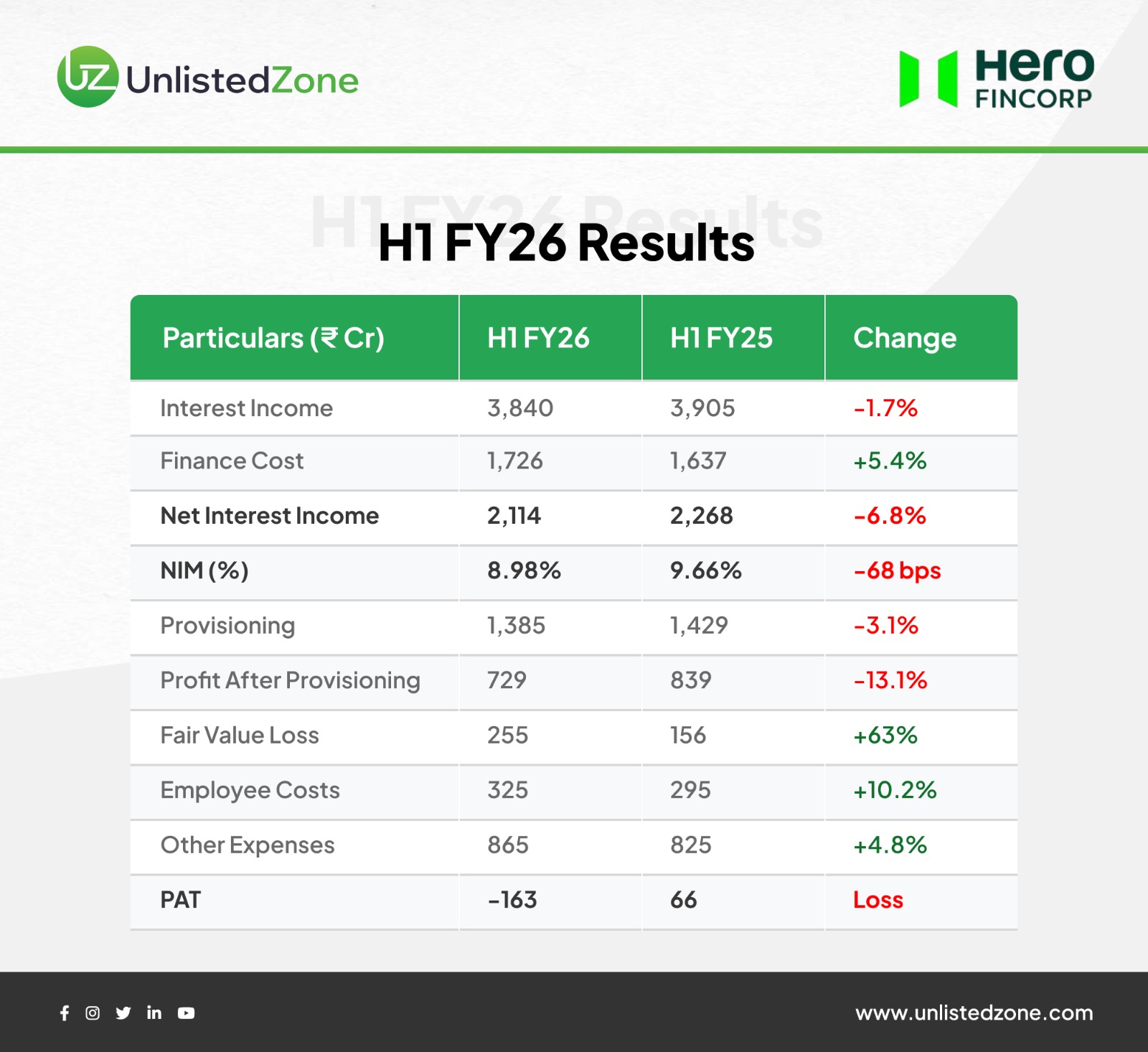 For those holding or tracking Hero FinCorp unlisted shares, these results show the company is going through a challenging period. The H1 FY26 performance reflects: