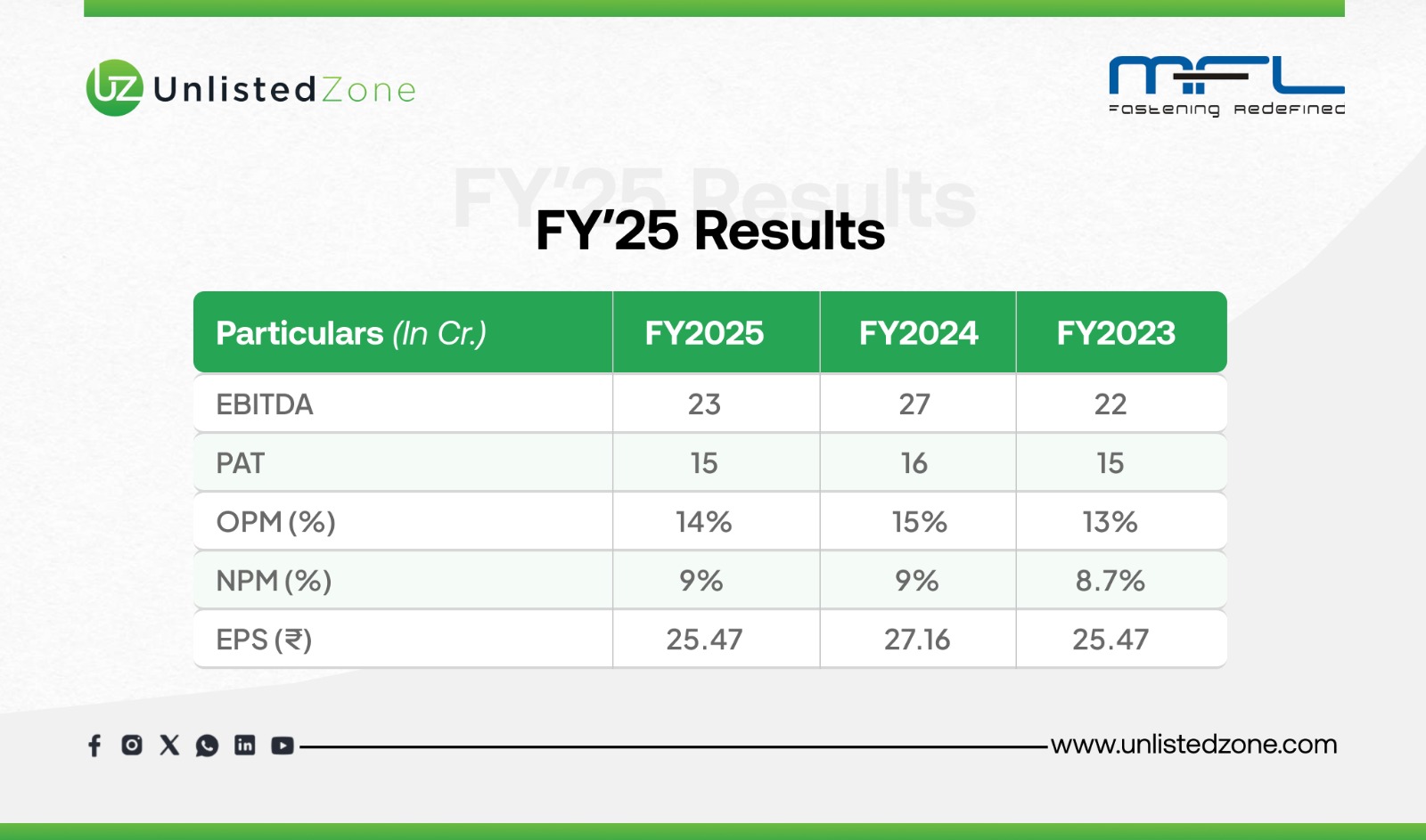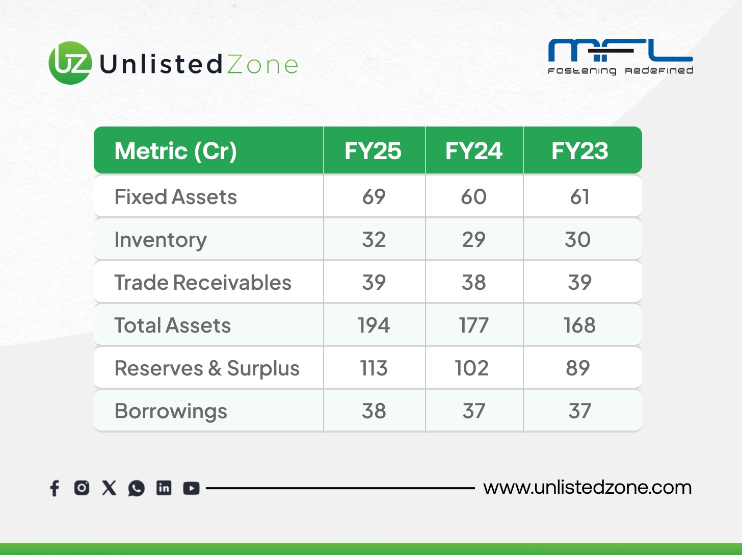 B) Key Highlights FY 2025 Of Mohindra Fasteners Unlisted Shares