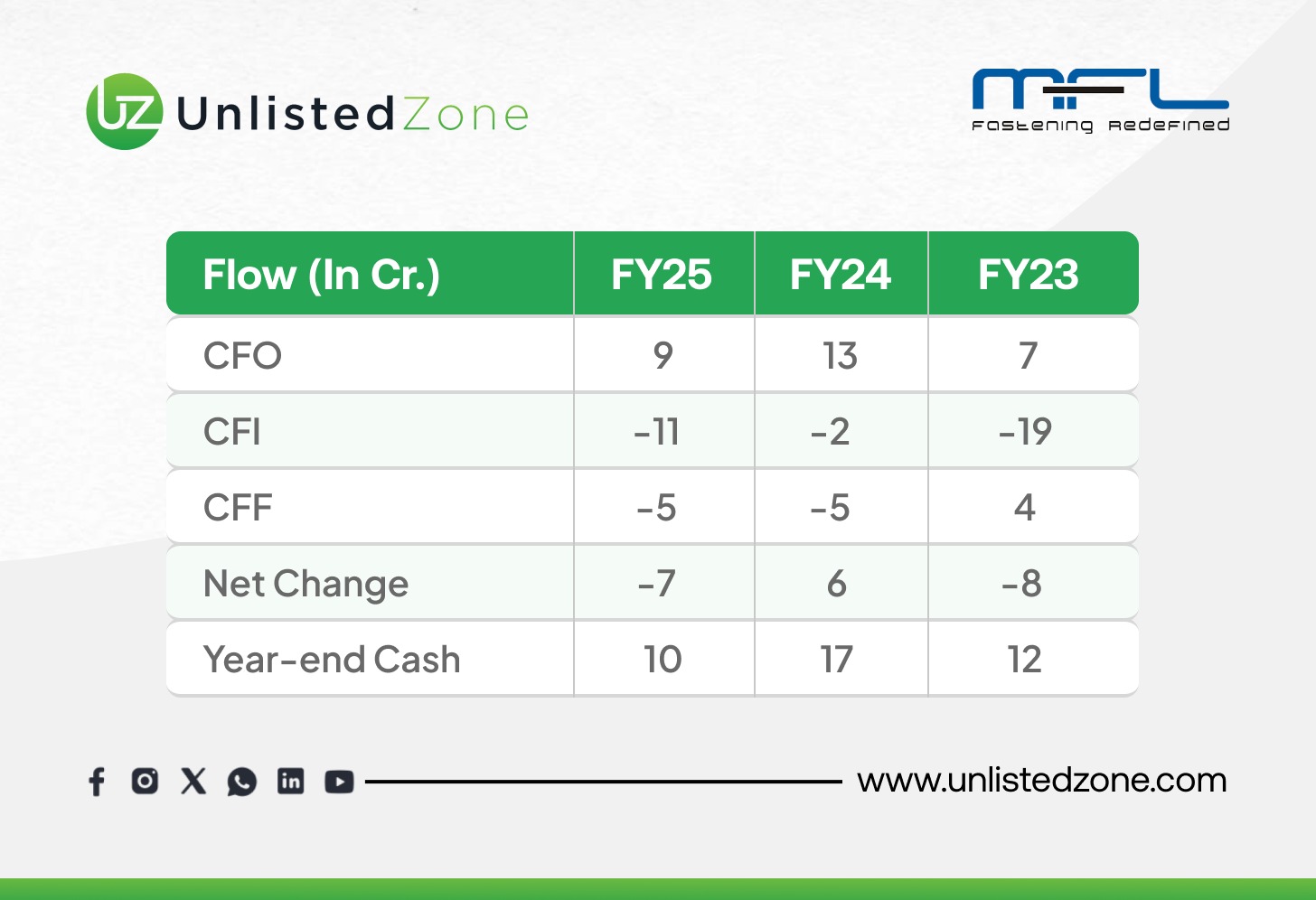 Potential Working Capital Pressure: A note of caution is the increase in Inventory to ₹32 Cr in FY25. This build-up could indicate preparation for future sales growth, but it also warrants monitoring for any signs of slowing inventory turnover.