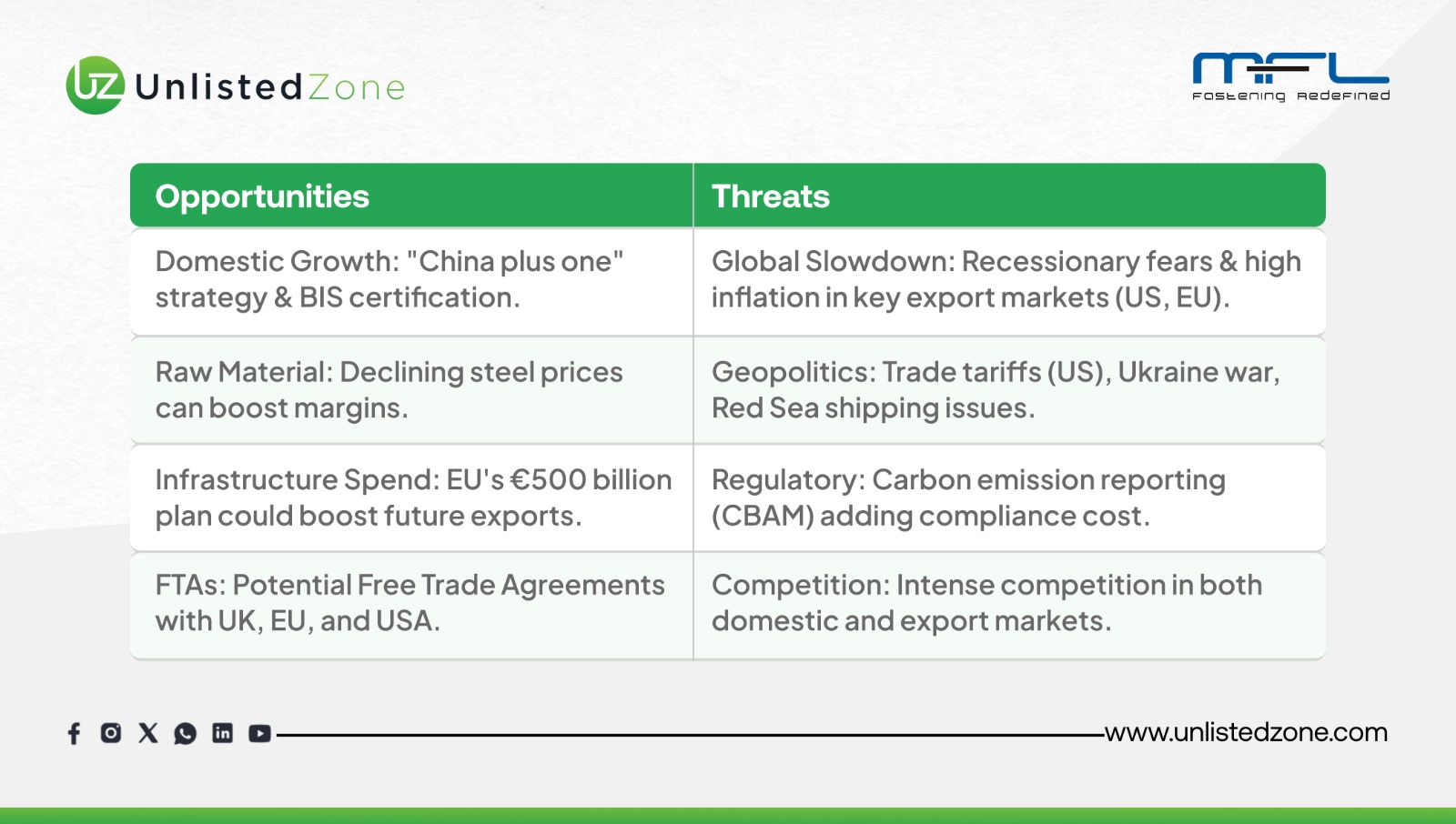 Key Opportunities & Threats of Mohindra Fastners Unlisted Shares
