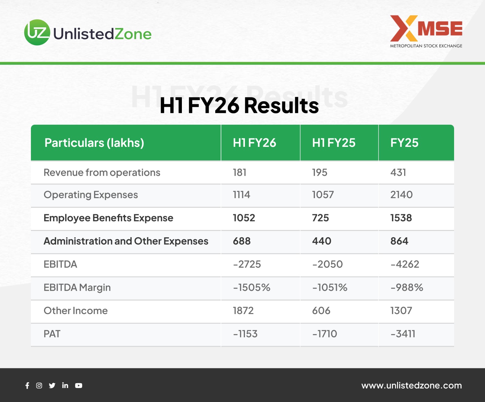 Total expenses for the half year stood at ₹3,206 lakh, reflecting a high fixed-cost structure typical of an exchange investing heavily in infrastructure upgrades.