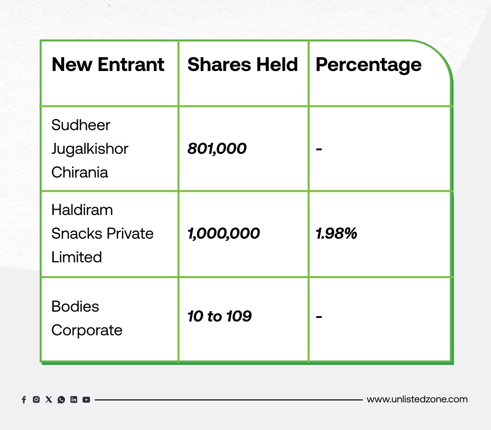 The shareholding pattern reveals significant interest from corporate investors and new individuals: