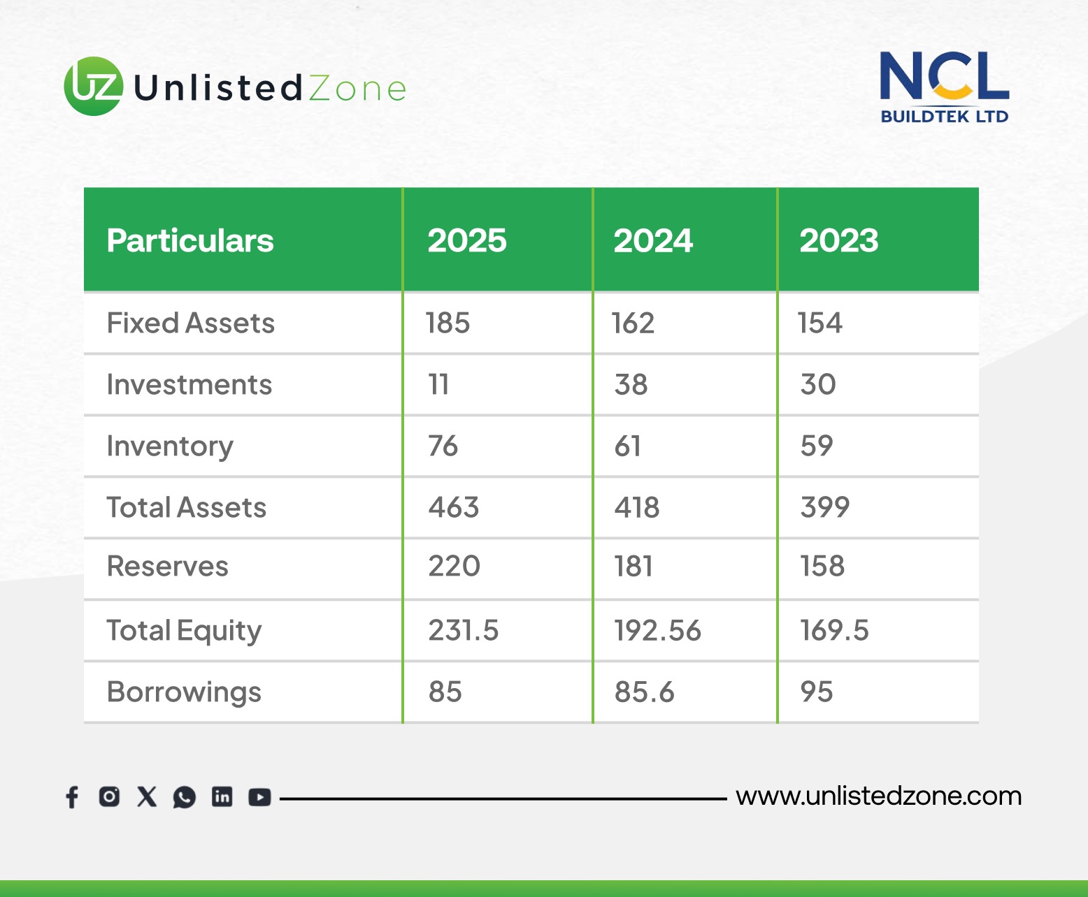 Total Assets grew significantly (399 Cr → 463 Cr), reflecting the company's expansion.