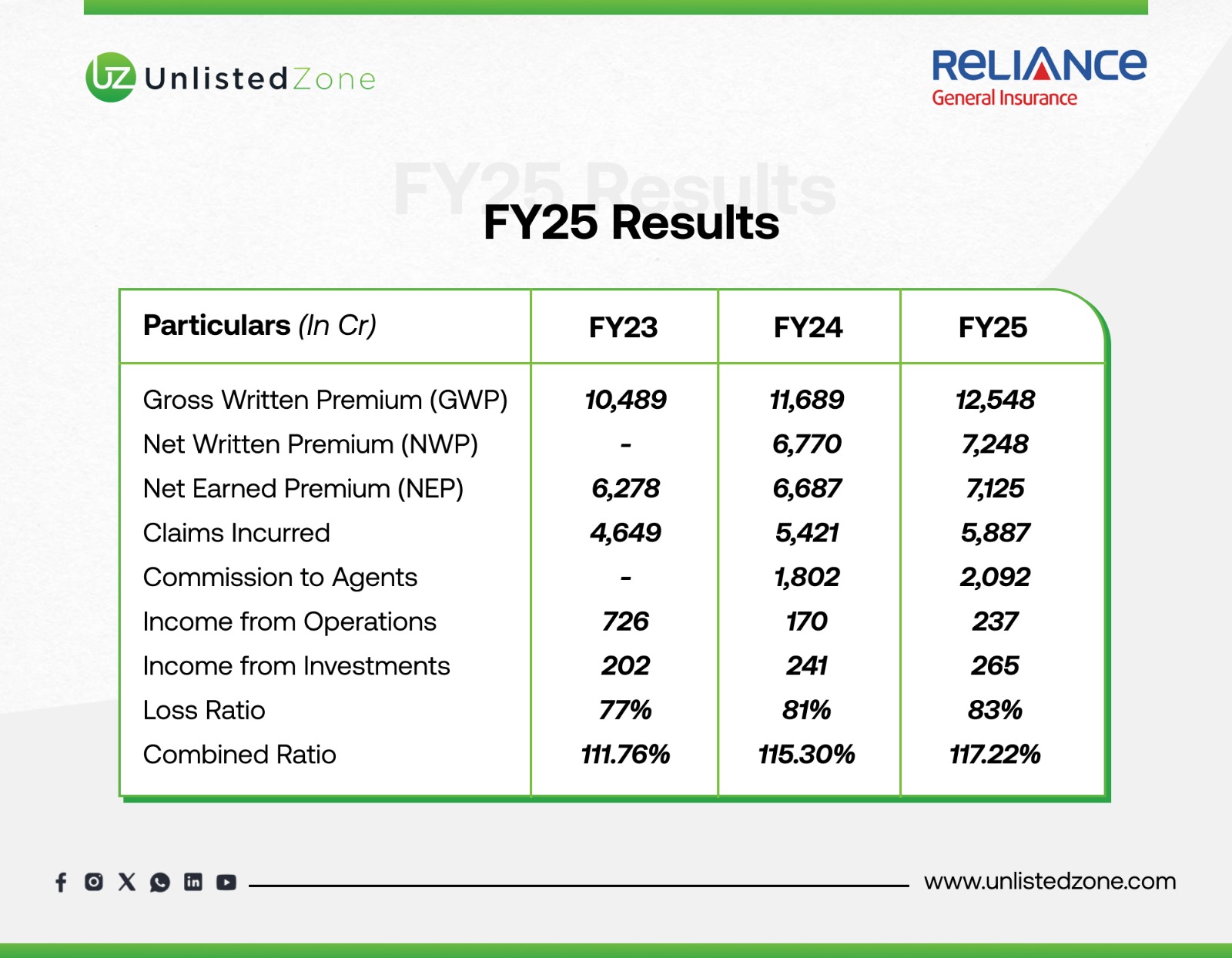 A) Reliance General Insurance – Financial Performance (FY23–FY25)