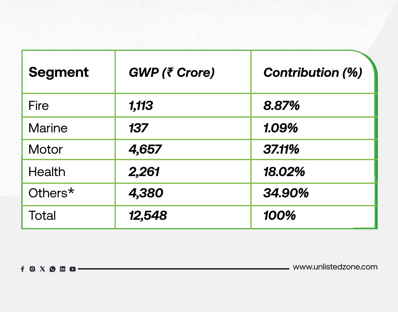 Valuation (M.Cap/GWP): 1.21x → fairly priced vs peers, but weaker profitability metrics compared to ICICI Lombard or Go Digit.