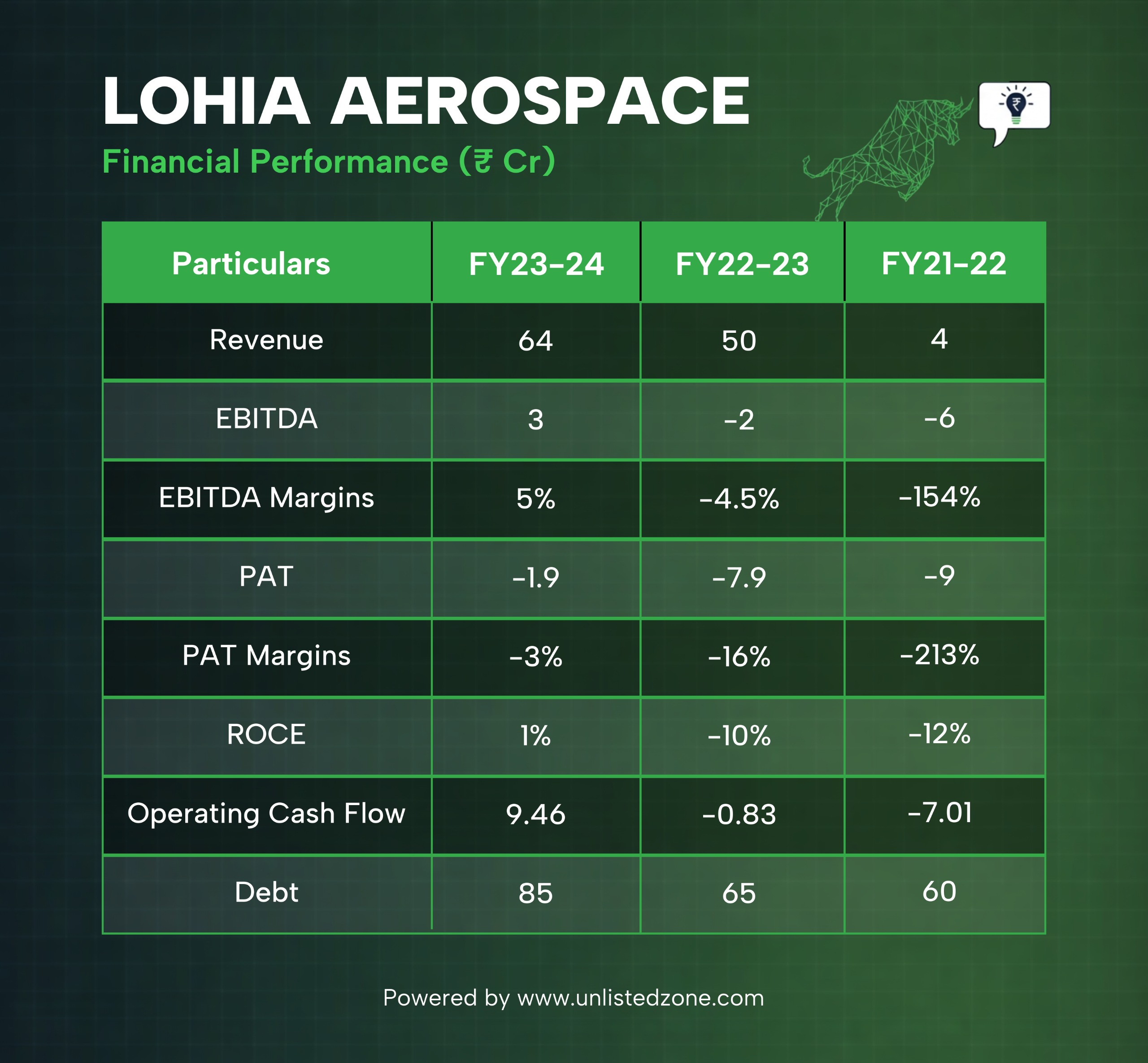 Revenue rose from ₹4 crore in FY22 to ₹64 crore in FY24.