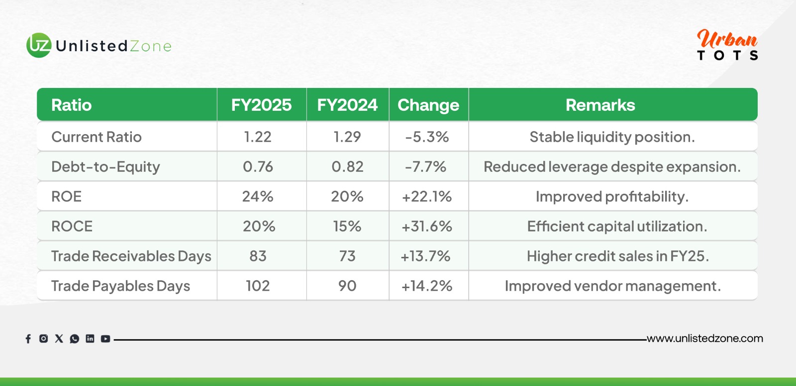 Commentary: The company’s rising valuation multiple mirrors investor confidence in its growth trajectory and the booming domestic toy market. Urban Tots issued only 2 lakh shares out of a planned 6 lakh in FY25, with the remainder issued post-year-end, indicating high investor demand and limited dilution.