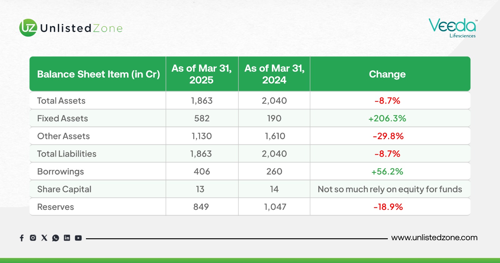 Total Assets: ₹1,863 Cr vs. ₹2,040 Cr (FY24) → down 8.7%.