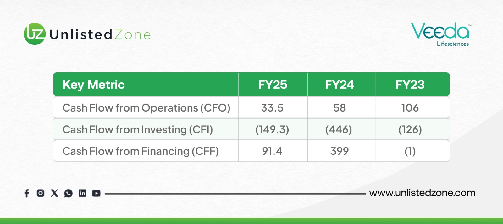 CFI: ₹-149.3 Cr vs. ₹-446 Cr vs. ₹-126 Cr → high investments in FY25.