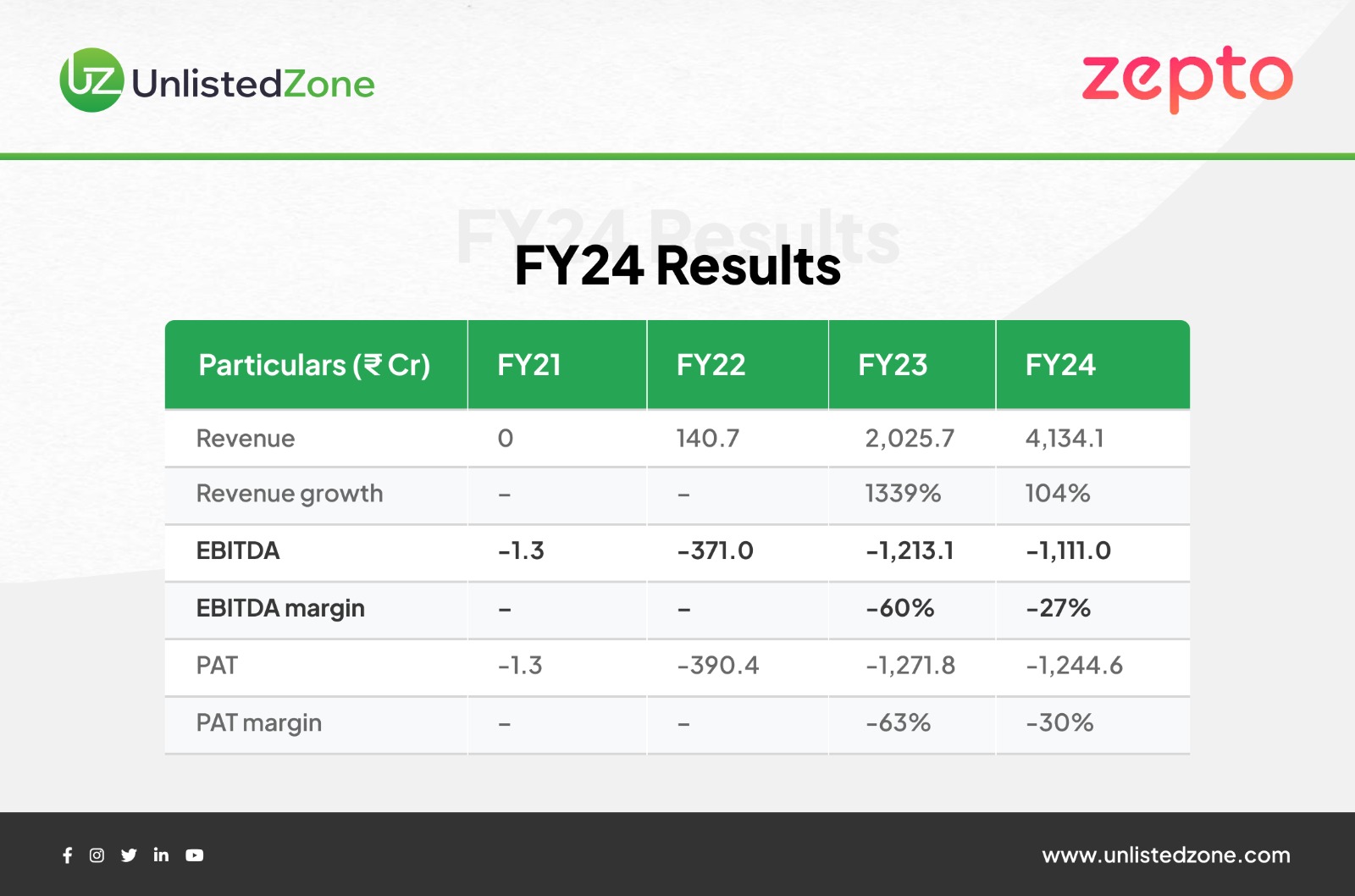 Zepto’s revenue trajectory shows explosive growth, but profitability remains distant.