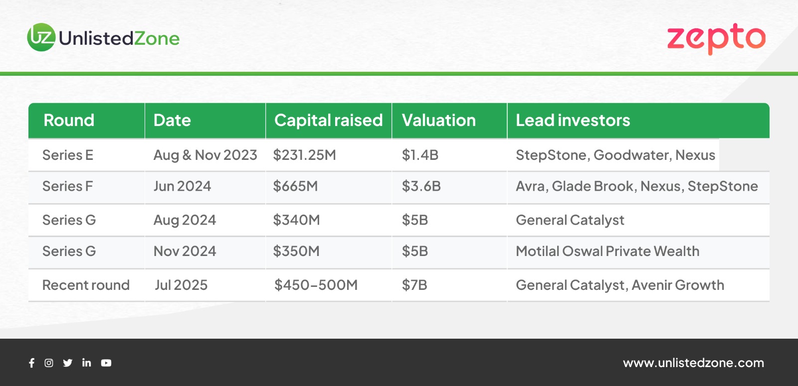 Zepto’s growth has been fuelled by a rapid series of large funding rounds.